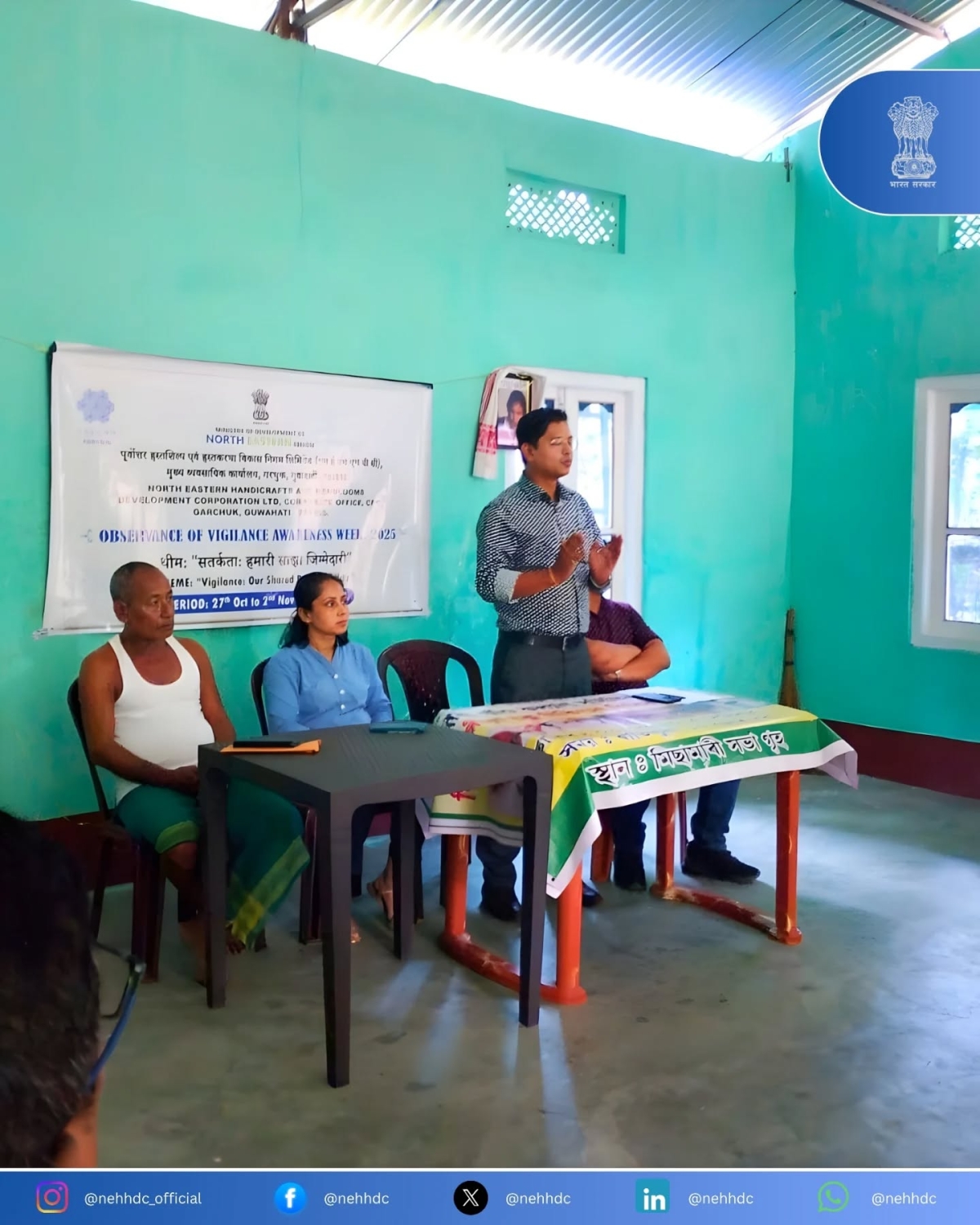 Extending the spirit of vigilance beyond the organisation, NEHHDC also conducted a Community Vigilance Outreach Programme at the Missamari Eco Development Committee Hall, under the Amchang Wildlife Range, Guwahati. The programme aimed to sensitise citizens about the importance of vigilance in public life and the collective role of society in preventing corruption.