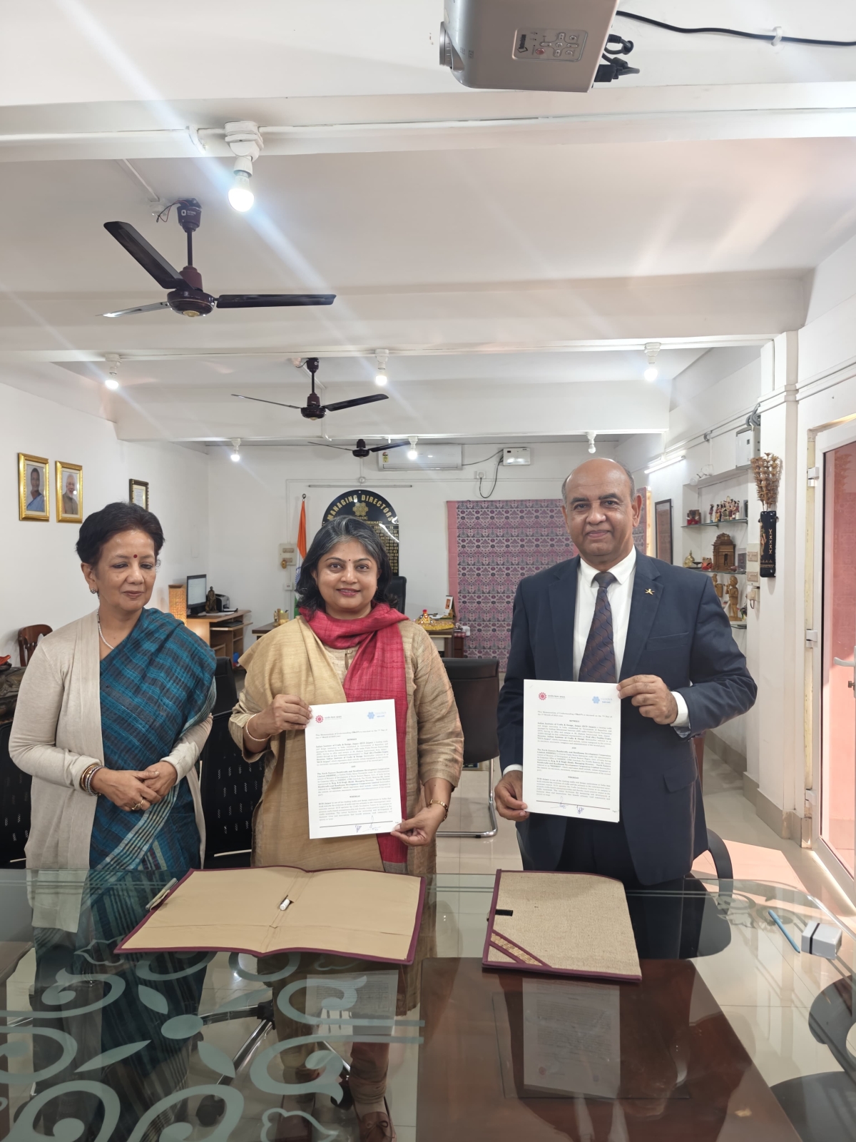 On 7th January 2025, NEHHDC hosted the signing of a significant MoU with the Indian Institute of Crafts and Design (IICD) Jaipur. This partnership aims to promote and modernize North Eastern crafts while empowering the region’s artisans, enhancing their opportunities for growth and recognition.