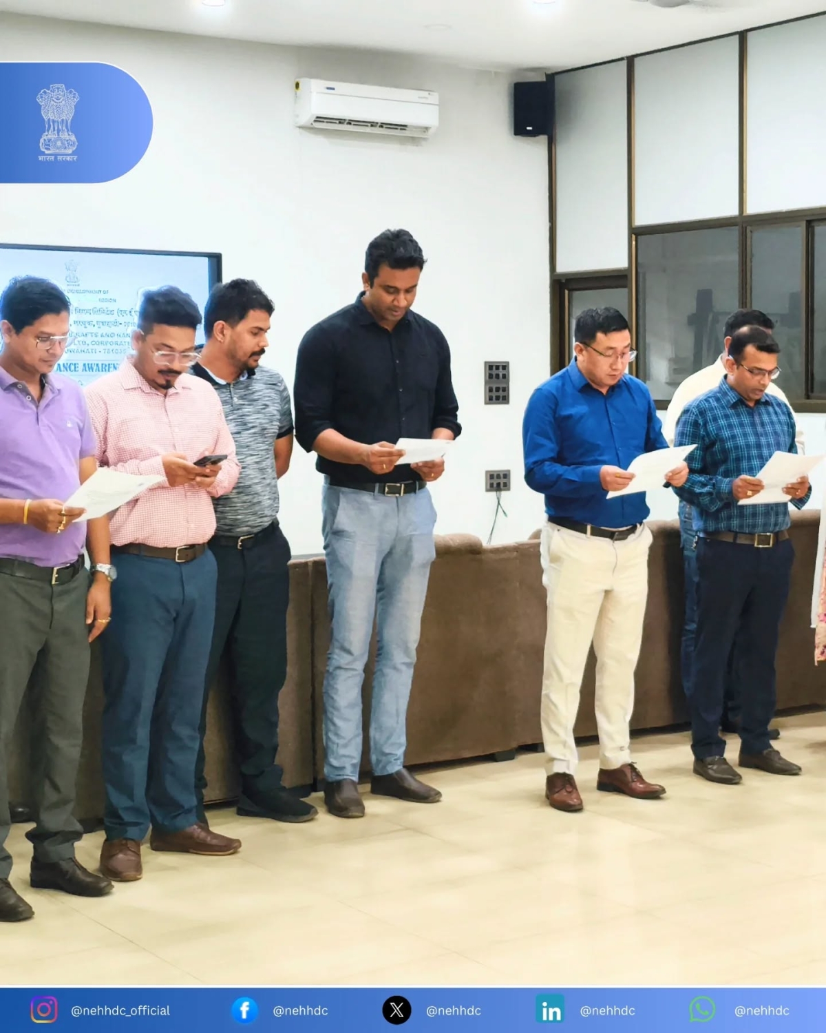 The pledge was administered across NEHHDC’s key establishments, including the Corporate Office, Ambari Showroom, Eri Silk Spinning Plant at Baksa, and the Purbashree Showroom at Dilli Haat, New Delhi, highlighting a unified organisational commitment that transcends geographical boundaries.